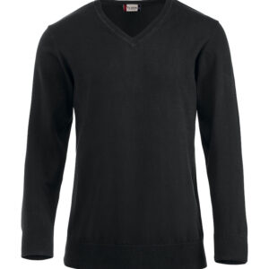 | V-ringad stickad tröja med fully fashion-stickning. Silikonbehandlad för en mjukare känsla. Elastan i den ribbade mudden både i ärmslut och nedtill. |