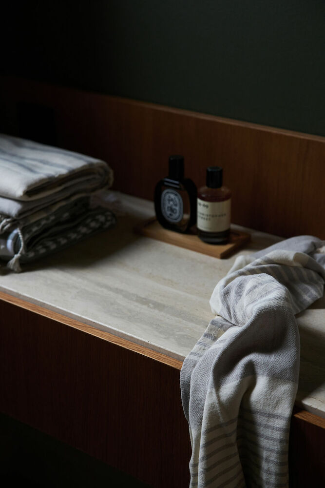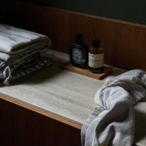 Ella Hamam 50×70 är en tidlös handduk i tunn vävd ekologisk bomull. Alla handdukar är smyckade med Sagaforms klassiska och karakteristiska ränder i olika mönster och i tre färgkombinationer: grönt, blått och beige. Fransar på kortsidorna.