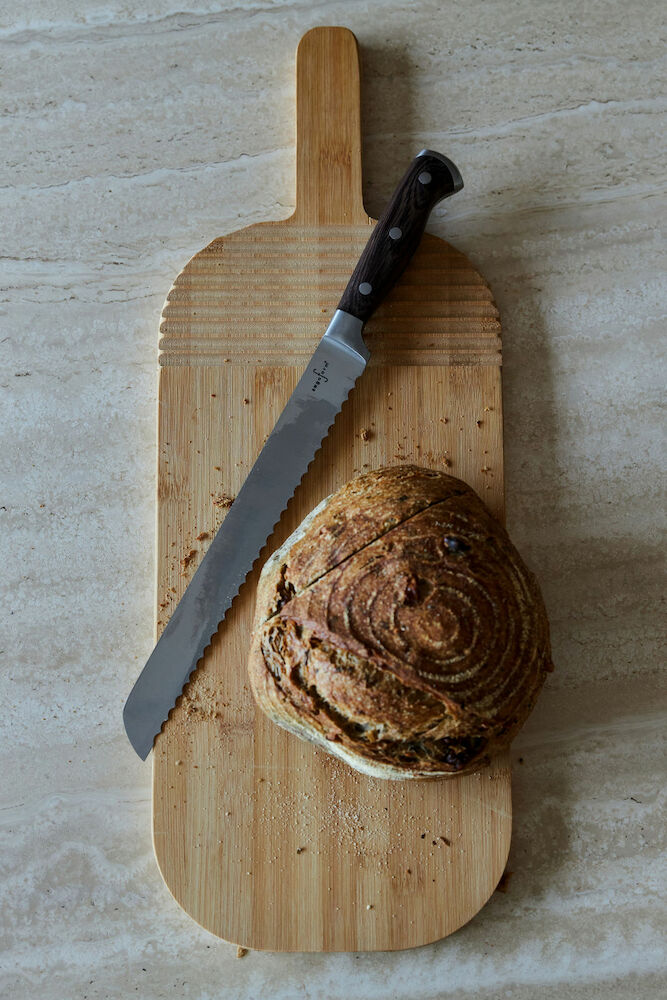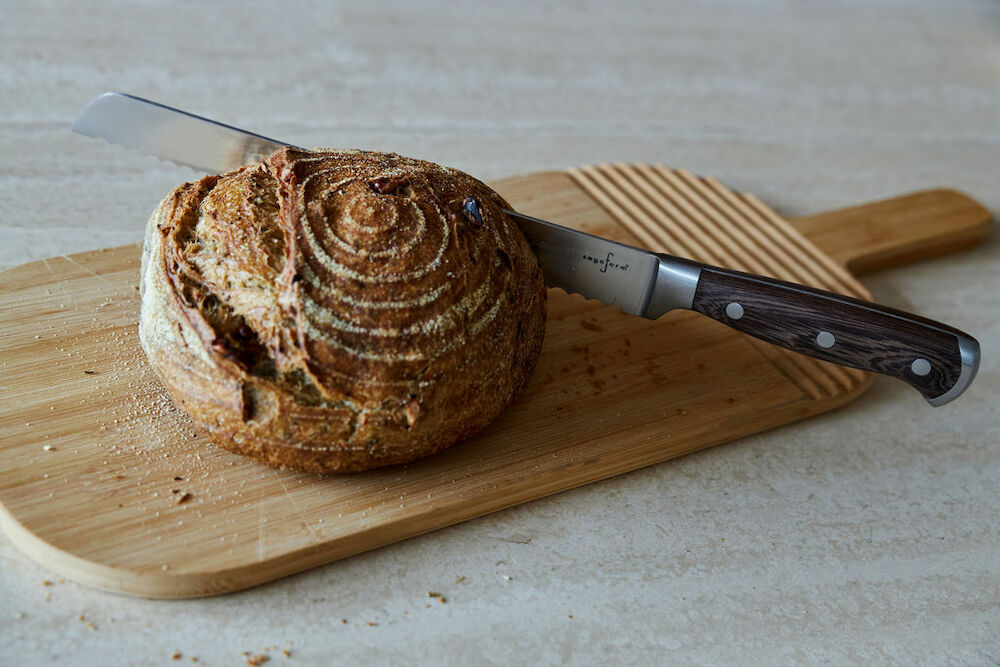 Etiketter: brödkniv, rostfritt stål, sagaform, wengeträ